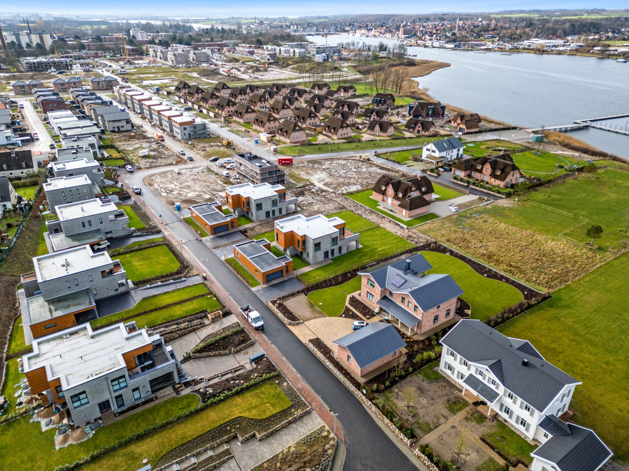 Oftmals lassen sich gerade größere Immobilien erst mit der Drohne in voller Größe aufnehmen. Außerdem kann in Drohnenfotos die Lage und Umgebung des Objektes besser dargestellt werden.