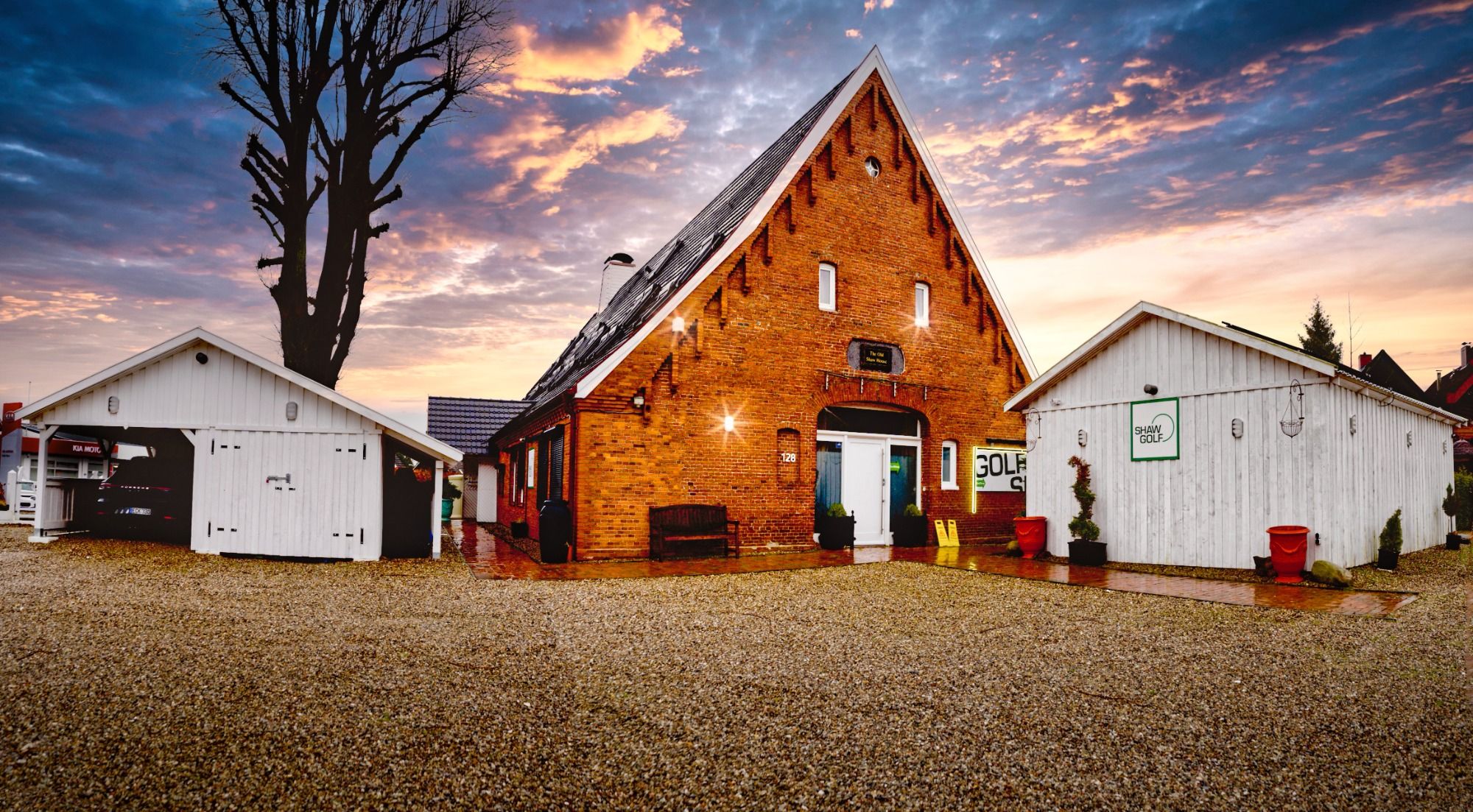 großes rotes Haus mit Nebengebäuden